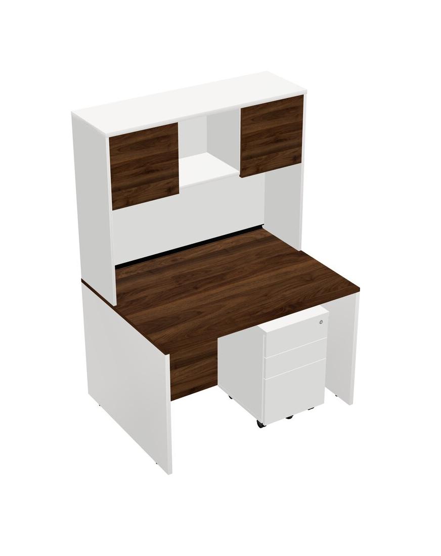Columbia Walnut Rectangular Office Desk Plus White Wooden Mobile Drawers And White Hutch