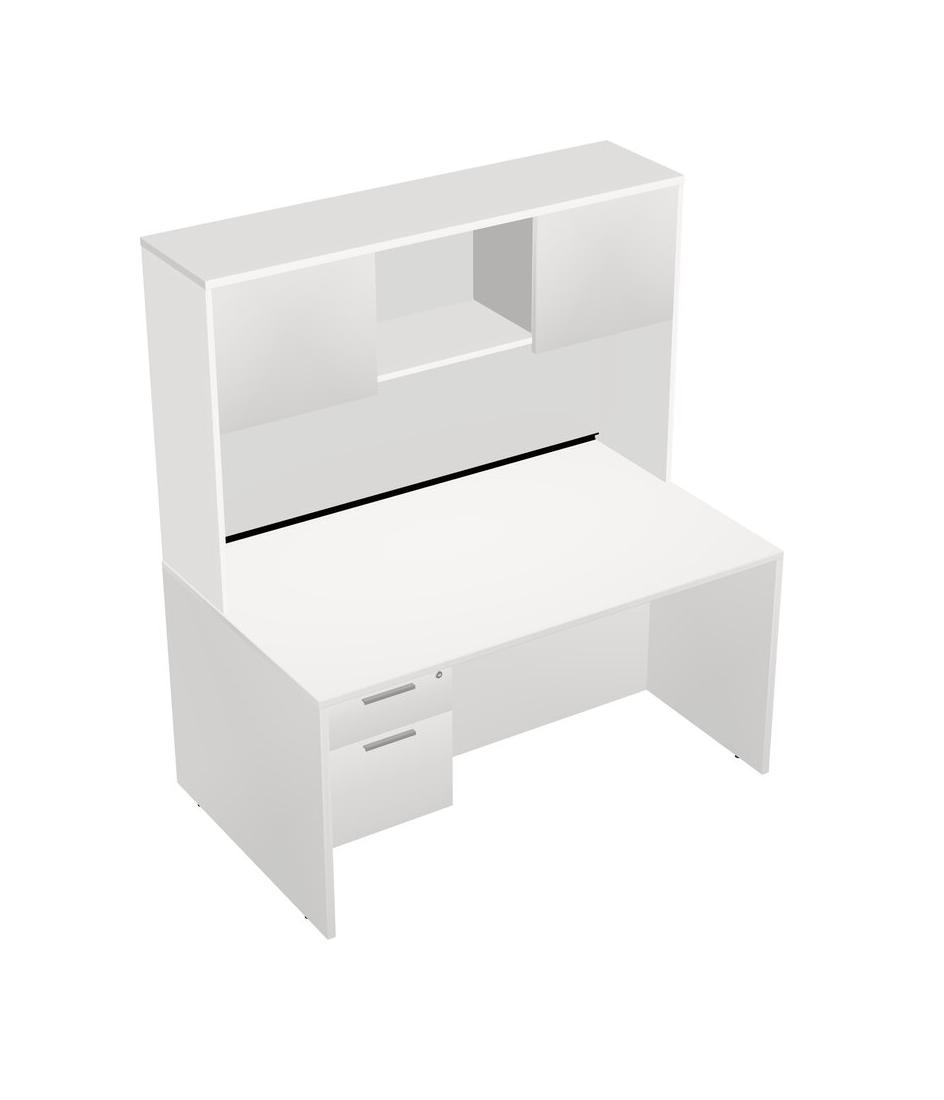 White Rectangular Office Desk Plus White Hanging Drawers And White Hutch