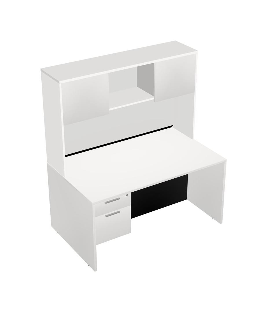 White Rectangular Office Desk Plus White Hanging Drawers And White Hutch