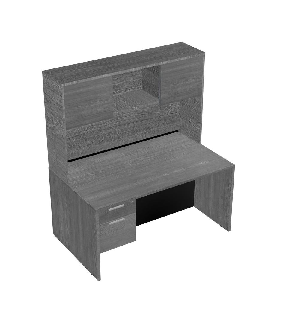 Grey Rectangular Office Desk Plus Grey Hanging Drawers And Grey Hutch