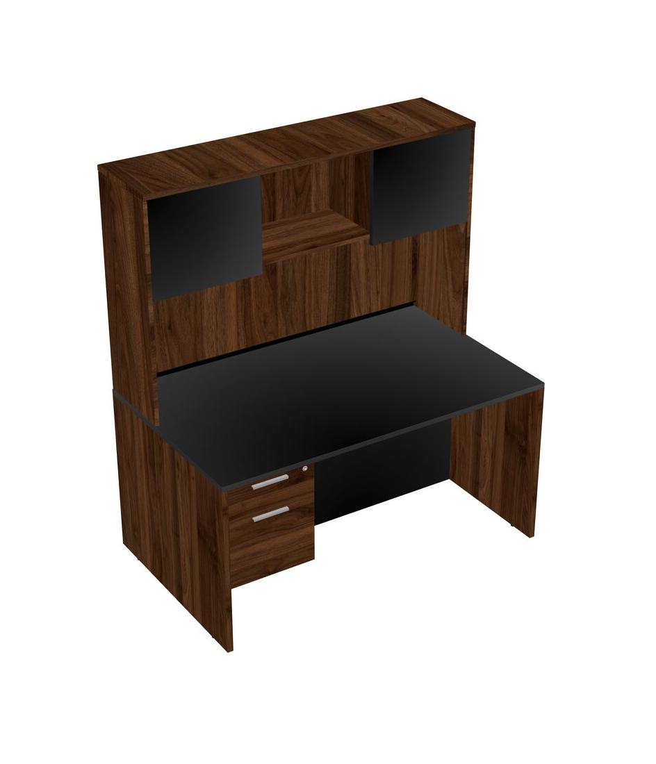Black Rectangular Office Desk Plus Columbia Walnut Hanging Drawers And Columbia Walnut Hutch