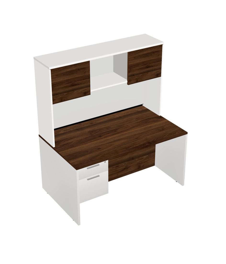 Columbia Walnut Rectangular Office Desk Plus White Hanging Drawers And White Hutch