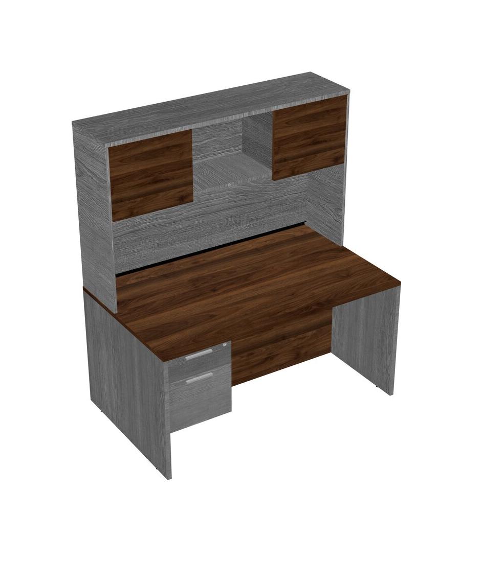 Columbia Walnut Rectangular Office Desk Plus Grey Hanging Drawers And Grey Hutch