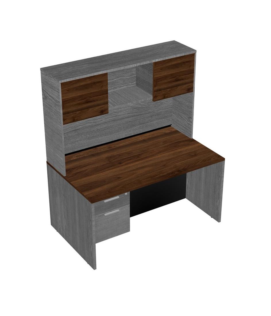 Columbia Walnut Rectangular Office Desk Plus Grey Hanging Drawers And Grey Hutch