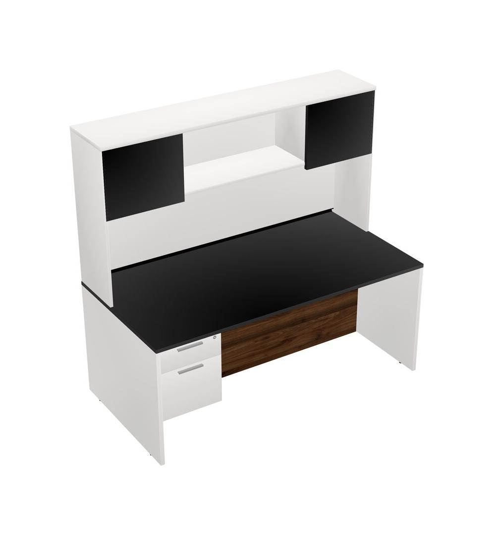 Black Rectangular Office Desk Plus White Hanging Drawers And White Hutch