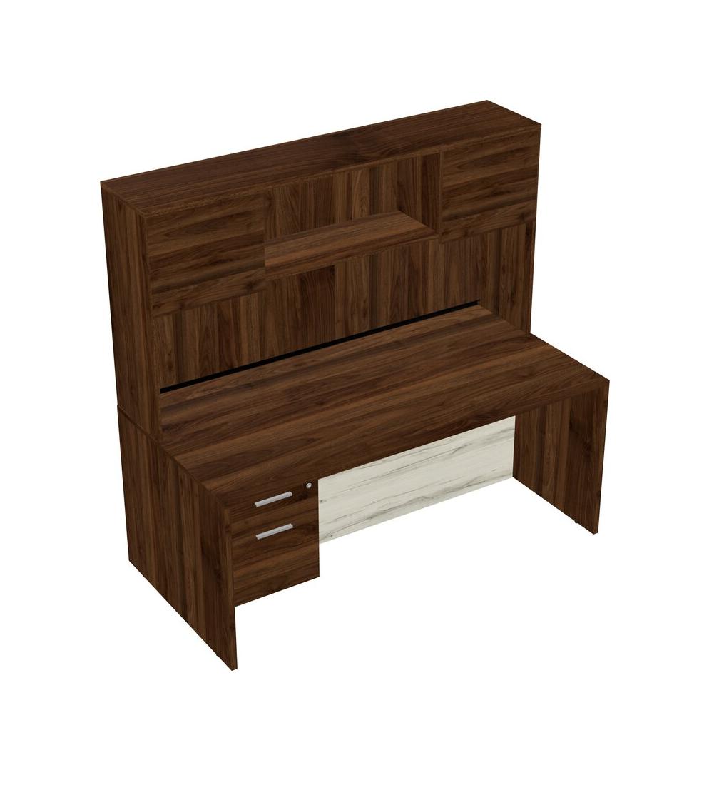 Columbia Walnut Rectangular Office Desk Plus Columbia Walnut Hanging Drawers And Columbia Walnut Hutch