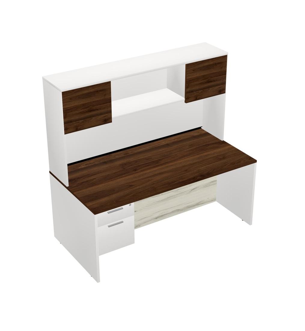 Columbia Walnut Rectangular Office Desk Plus White Hanging Drawers And White Hutch
