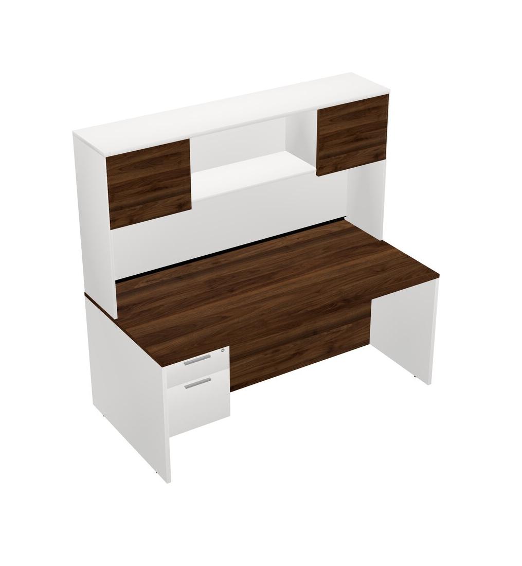 Columbia Walnut Rectangular Office Desk Plus White Hanging Drawers And White Hutch