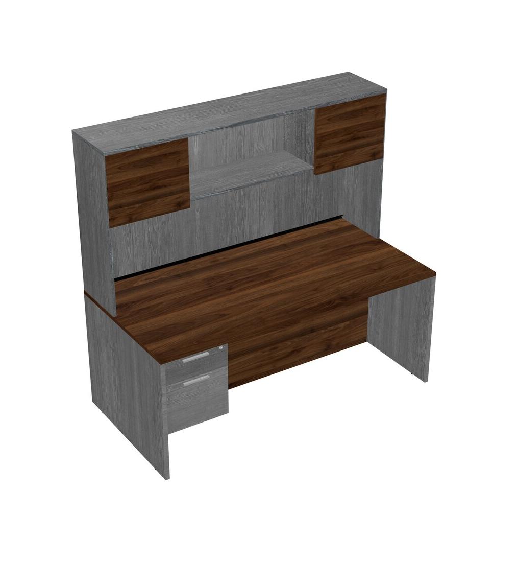 Columbia Walnut Rectangular Office Desk Plus Grey Hanging Drawers And Grey Hutch