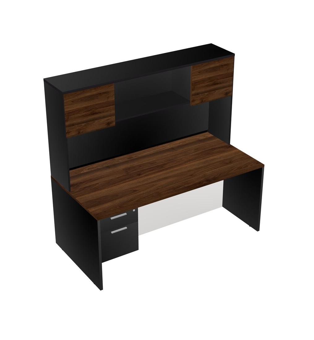Columbia Walnut Rectangular Office Desk Plus Black Hanging Drawers And Black Hutch