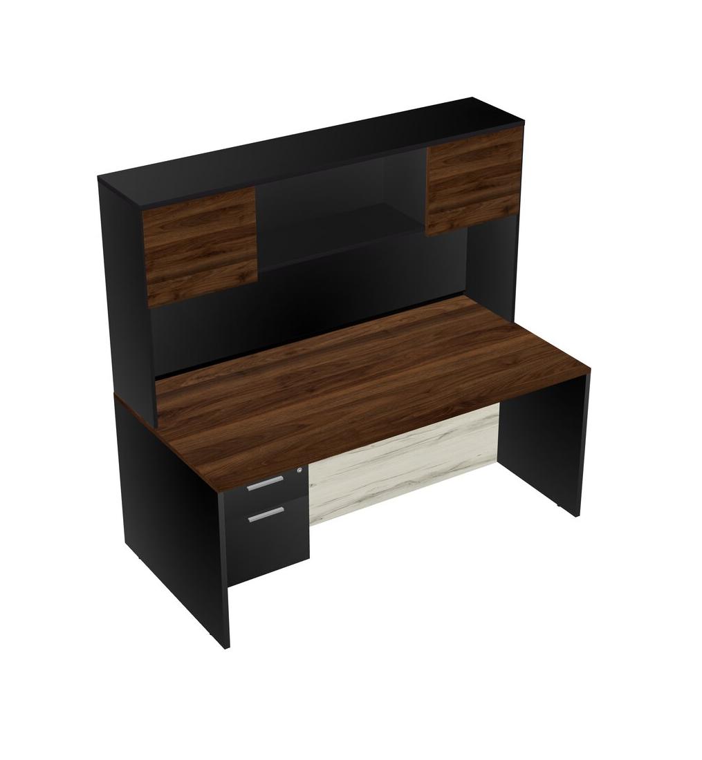 Columbia Walnut Rectangular Office Desk Plus Black Hanging Drawers And Black Hutch