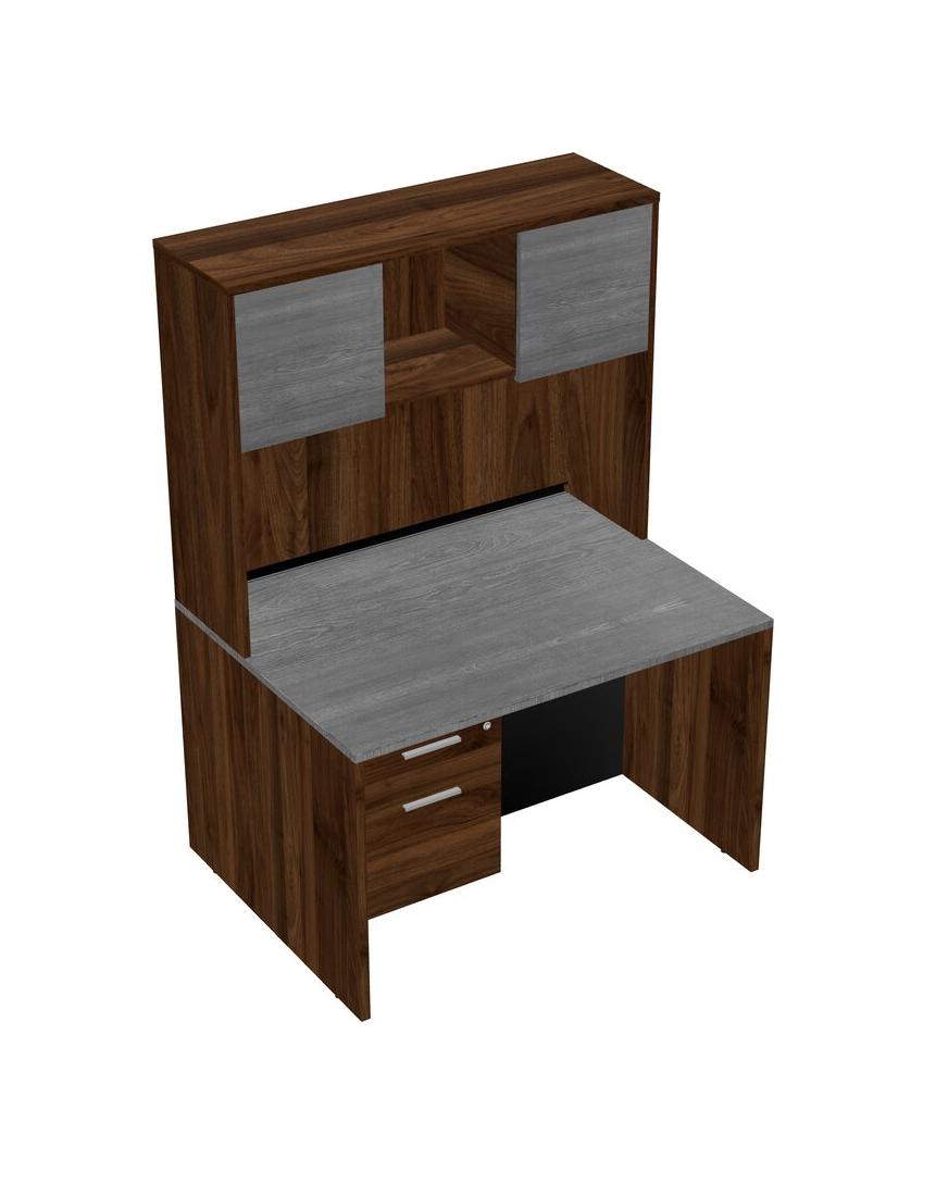 Grey Rectangular Office Desk Plus Columbia Walnut Hanging Drawers And Columbia Walnut Hutch