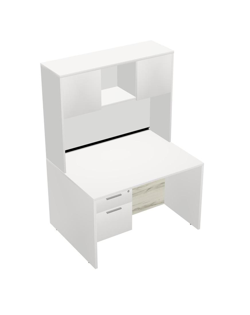 White Rectangular Office Desk Plus White Hanging Drawers And White Hutch