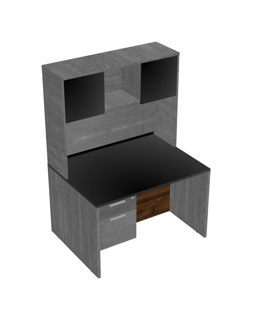Black Rectangular Office Desk Plus Grey Hanging Drawers And Grey Hutch