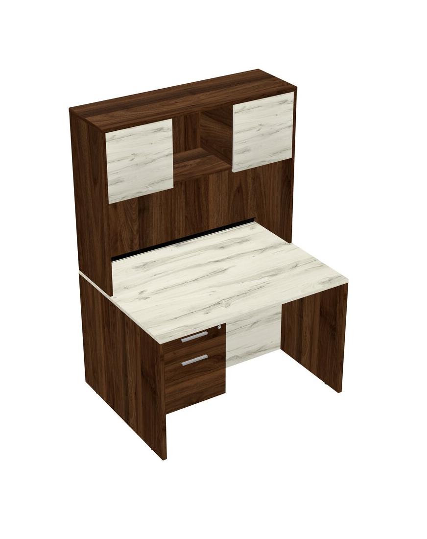 Heinne Holz Rectangular Office Desk Plus Columbia Walnut Hanging Drawers And Columbia Walnut Hutch