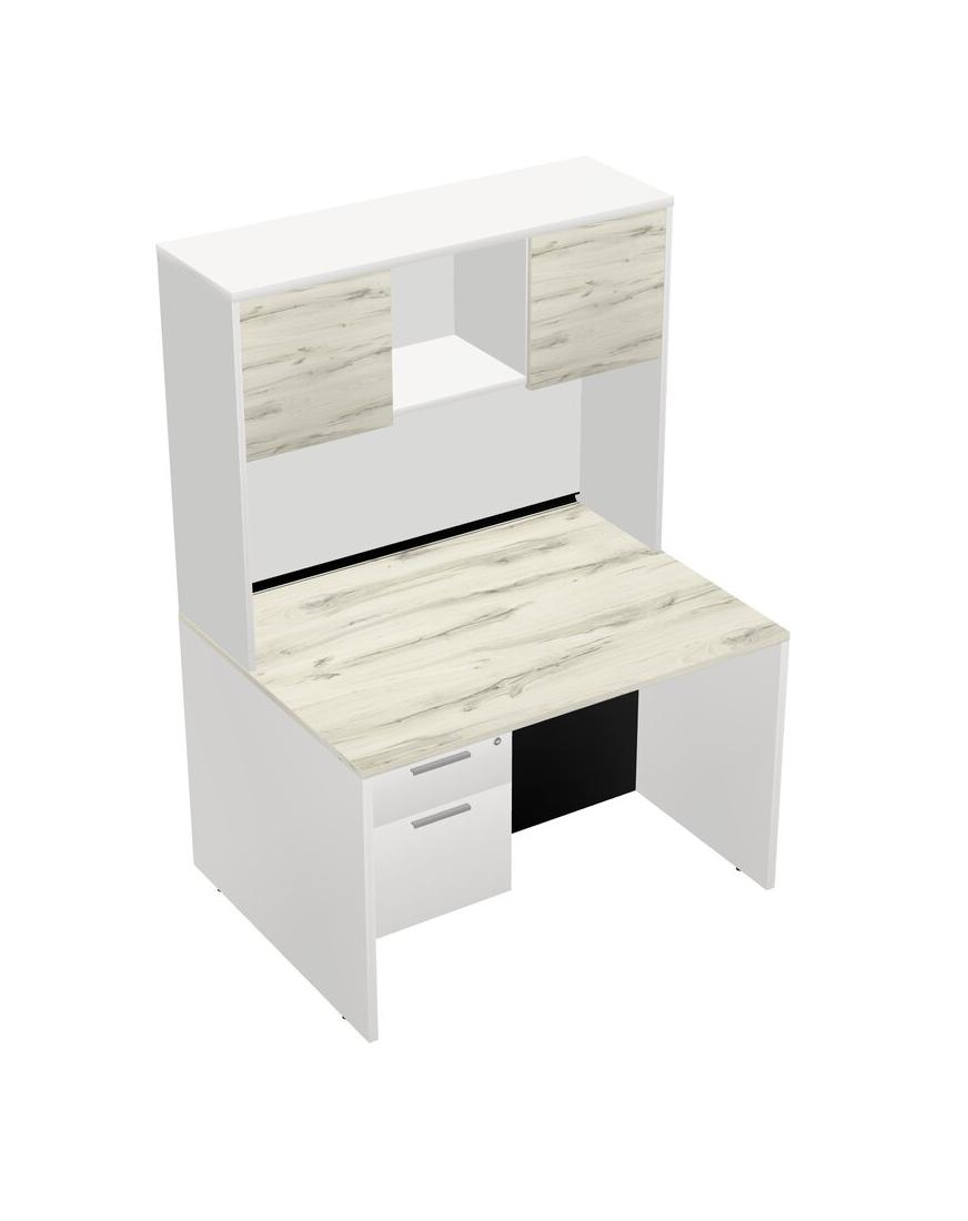 Heinne Holz Rectangular Office Desk Plus White Hanging Drawers And White Hutch