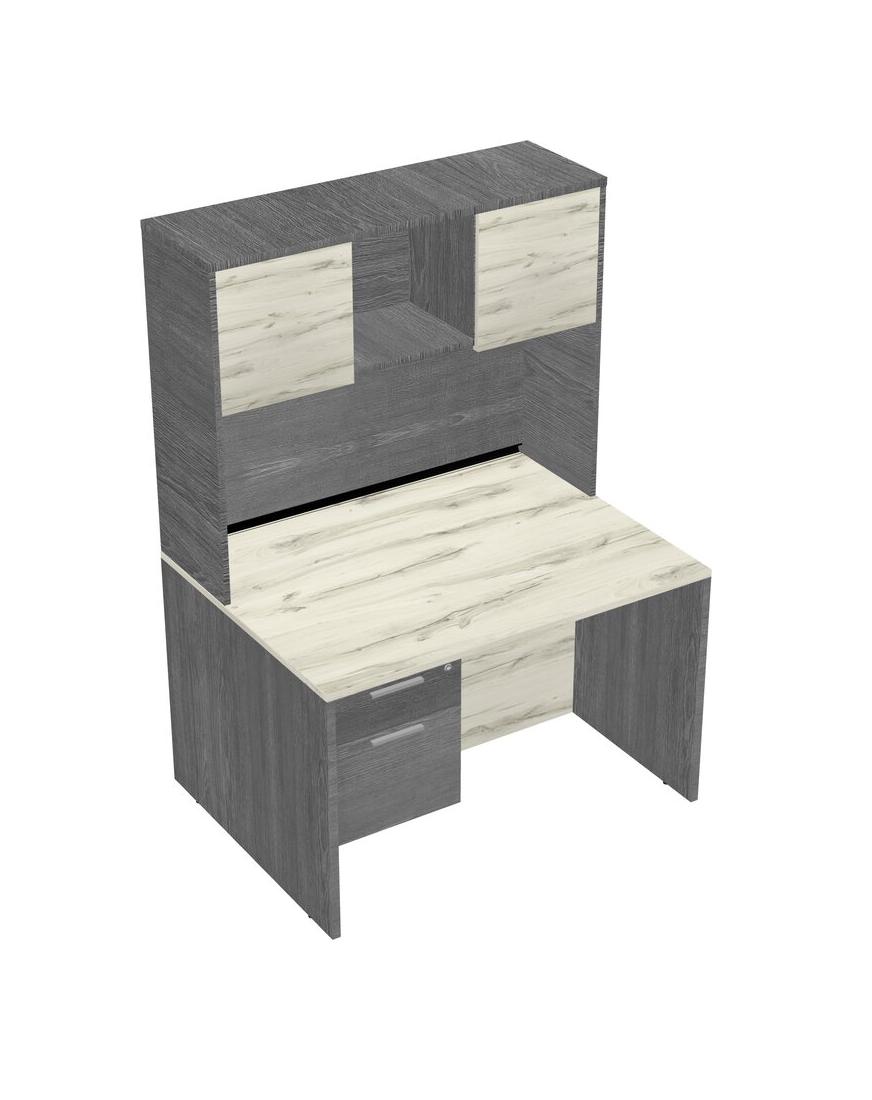 Heinne Holz Rectangular Office Desk Plus Grey Hanging Drawers And Grey Hutch
