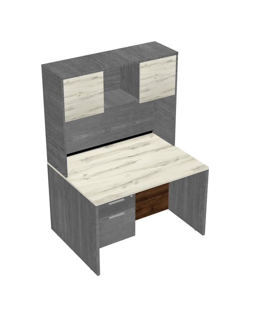 Heinne Holz Rectangular Office Desk Plus Grey Hanging Drawers And Grey Hutch