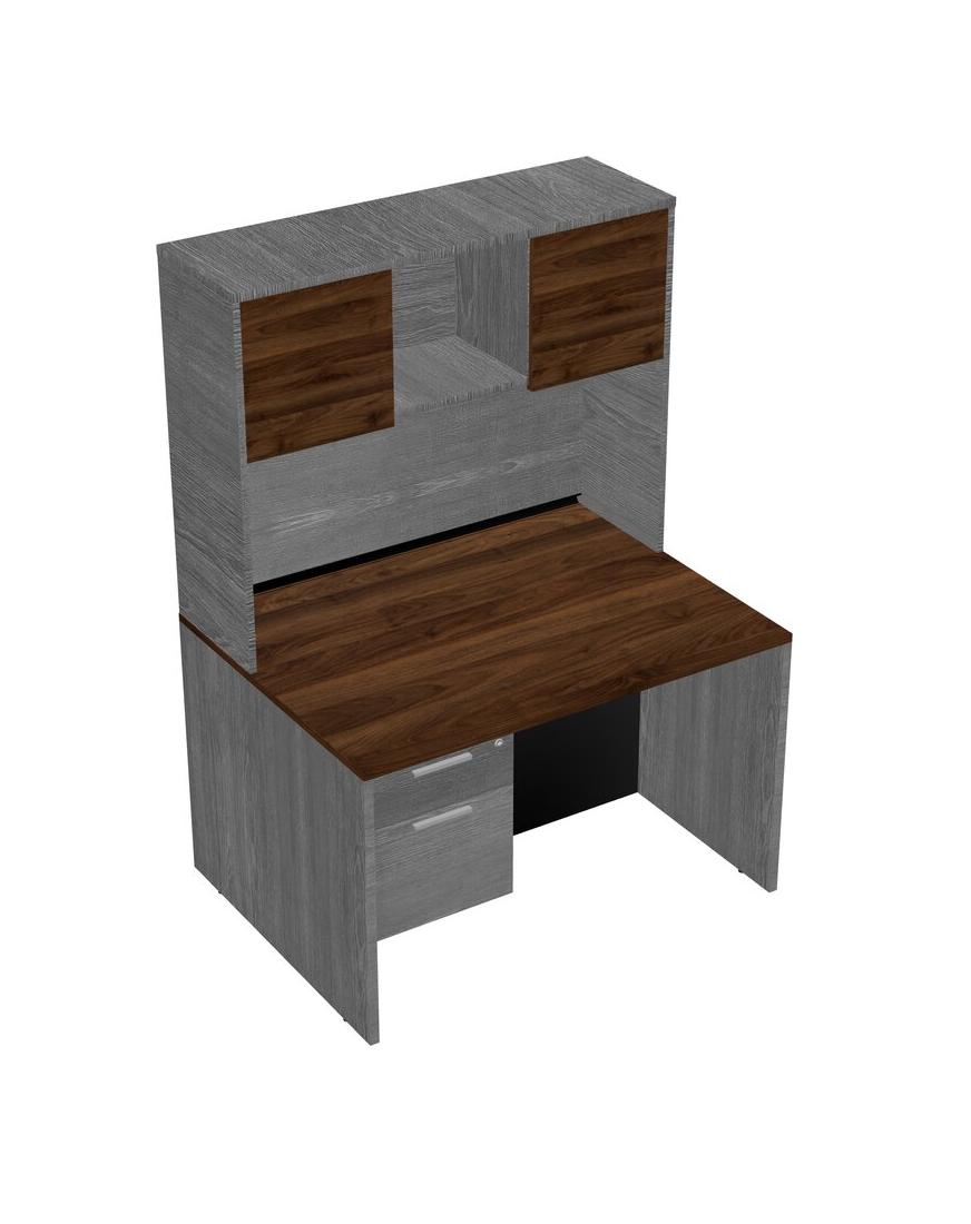 Columbia Walnut Rectangular Office Desk Plus Grey Hanging Drawers And Grey Hutch