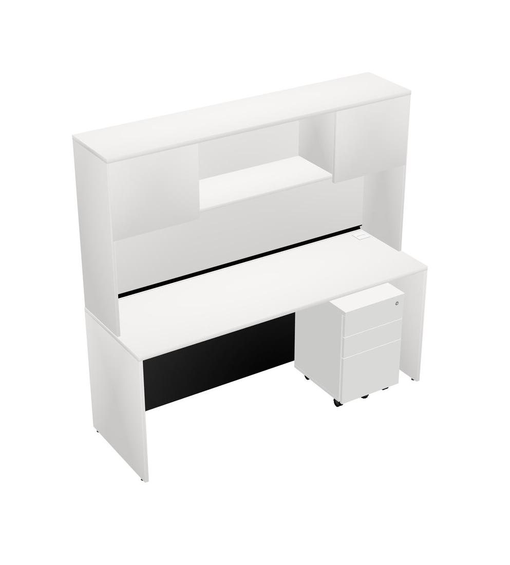 White Rectangular Office Desk Plus White Wooden Mobile Drawers And White Hutch