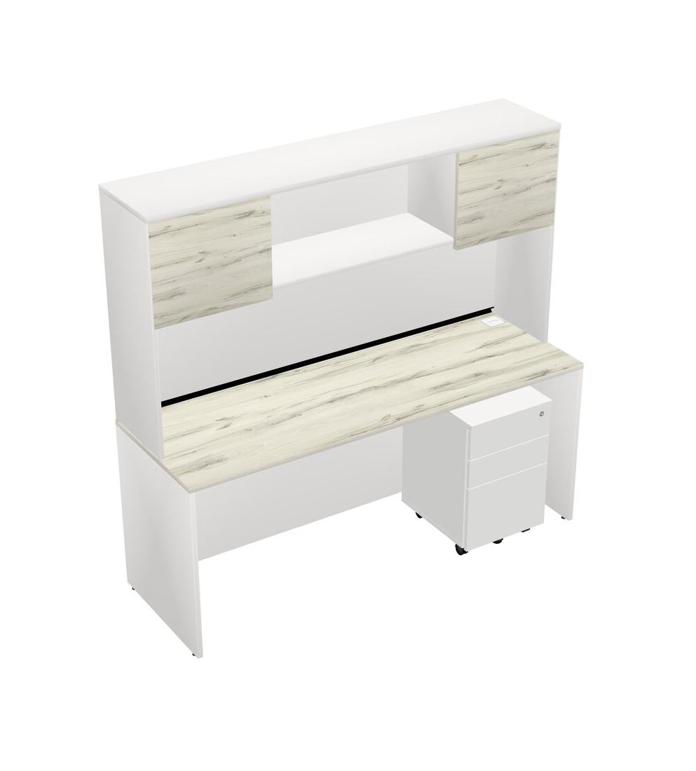 Heinne Holz Rectangular Office Desk Plus White Wooden Mobile Drawers And White Hutch