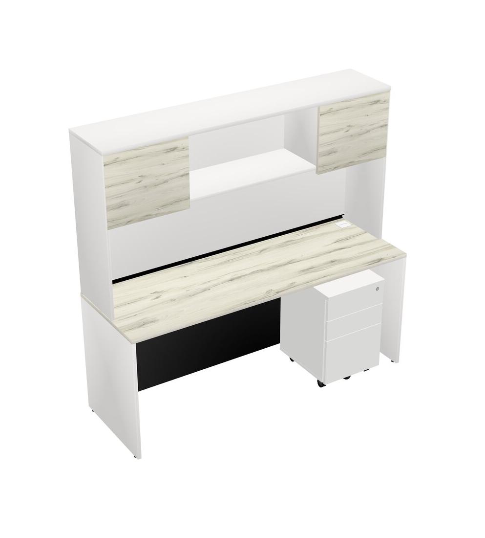 Heinne Holz Rectangular Office Desk Plus White Wooden Mobile Drawers And White Hutch