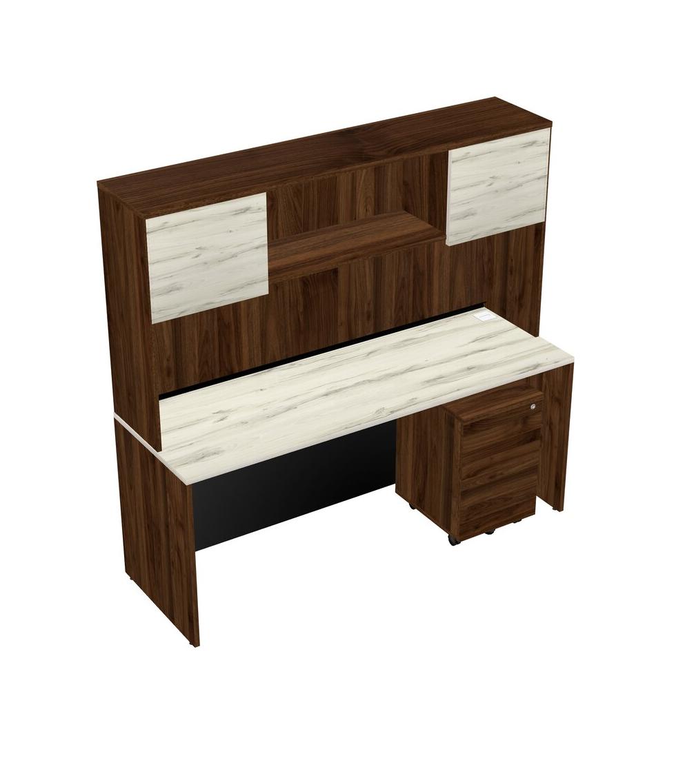 Heinne Holz Rectangular Office Desk Plus Columbia Walnut Wooden Mobile Drawers And Columbia Walnut Hutch