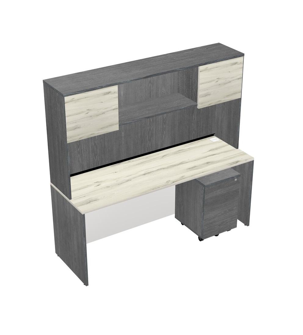 Heinne Holz Rectangular Office Desk Plus Grey Wooden Mobile Drawers And Grey Hutch