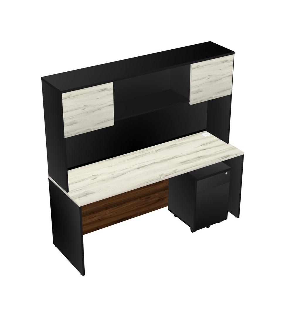 Heinne Holz Rectangular Office Desk Plus Black Wooden Mobile Drawers And Black Hutch