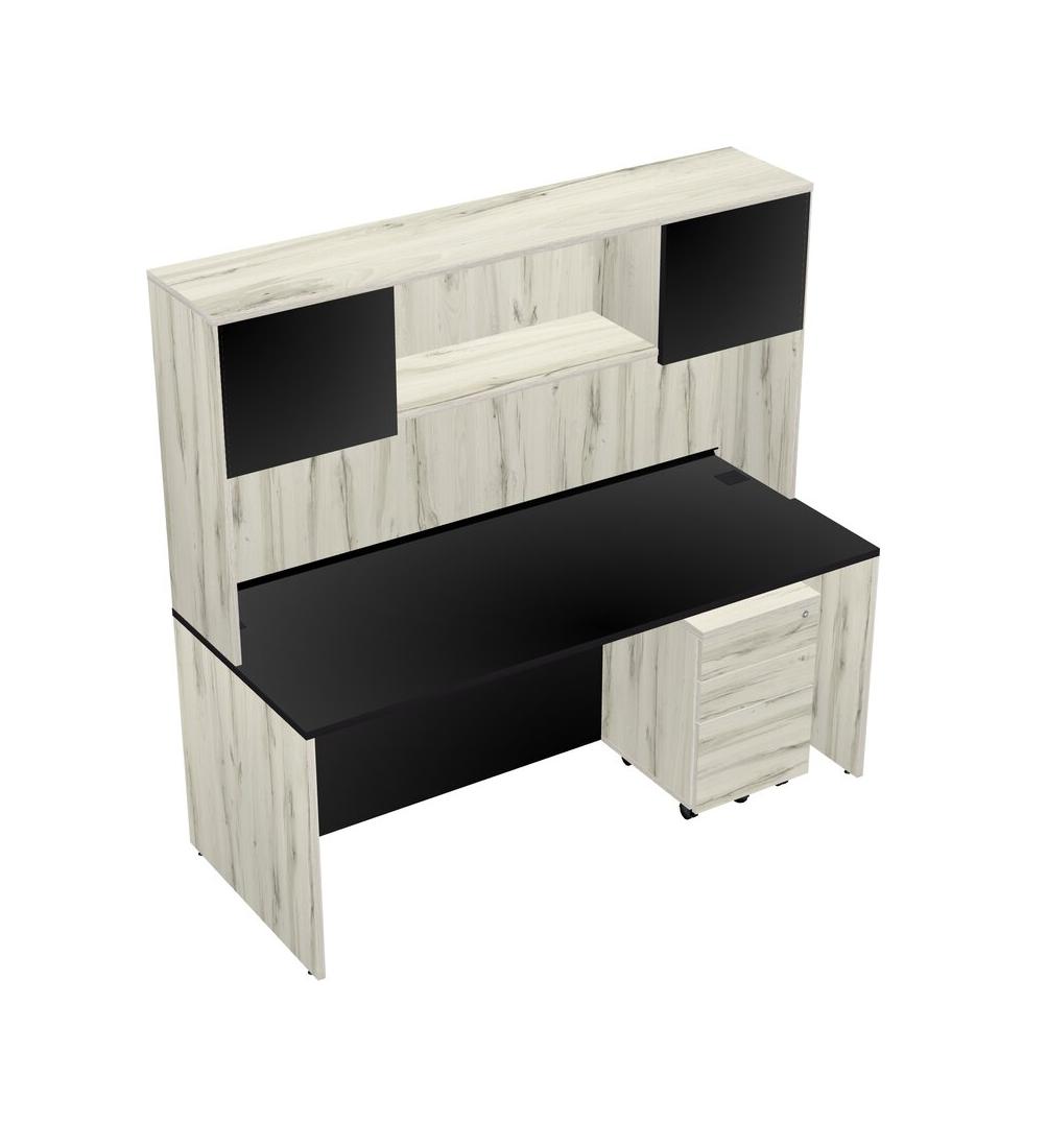 Black Rectangular Office Desk Plus Heinne Holz Wooden Mobile Drawers And Heinne Holz Hutch