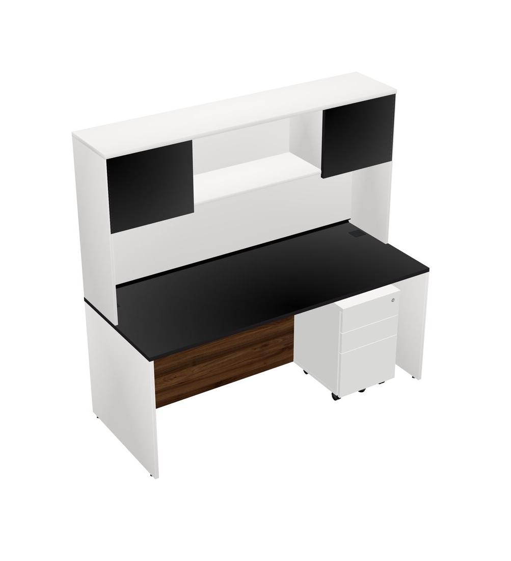 Black Rectangular Office Desk Plus White Wooden Mobile Drawers And White Hutch