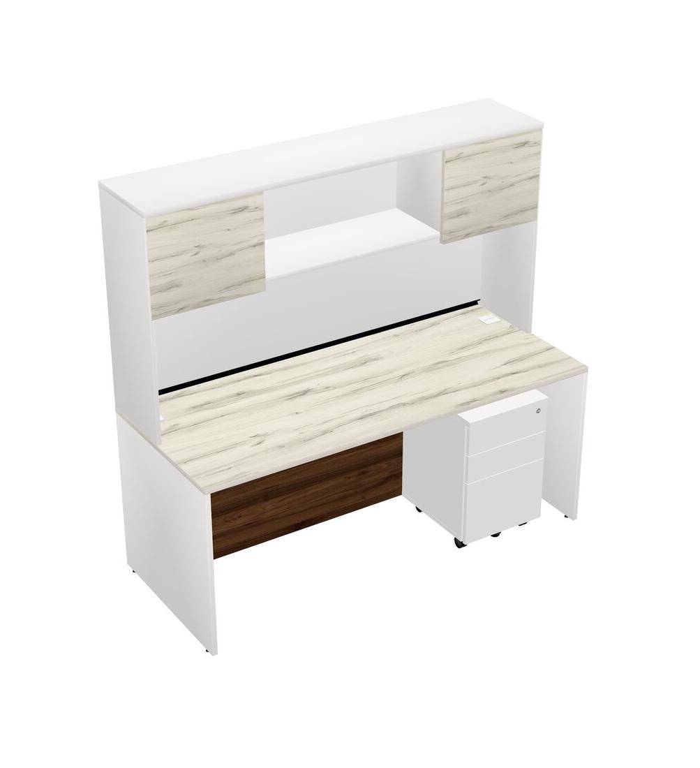 Heinne Holz Rectangular Office Desk Plus White Wooden Mobile Drawers And White Hutch