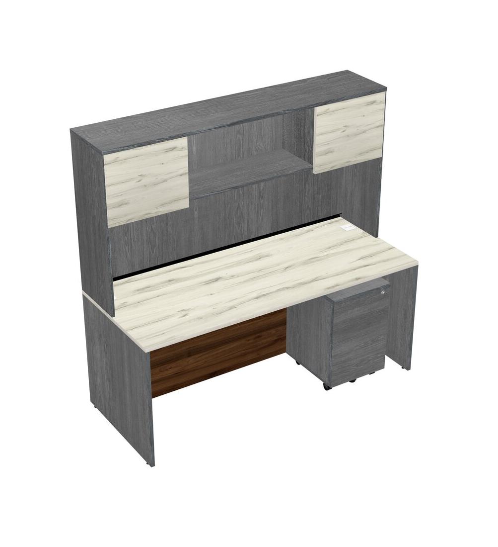 Heinne Holz Rectangular Office Desk Plus Grey Wooden Mobile Drawers And Grey Hutch