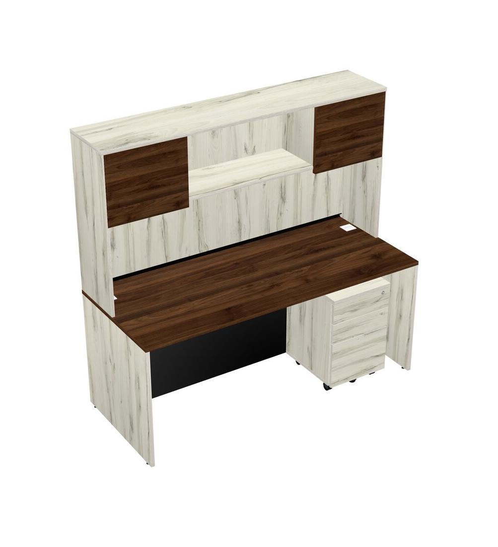 Columbia Walnut Rectangular Office Desk Plus Heinne Holz Wooden Mobile Drawers And Heinne Holz Hutch