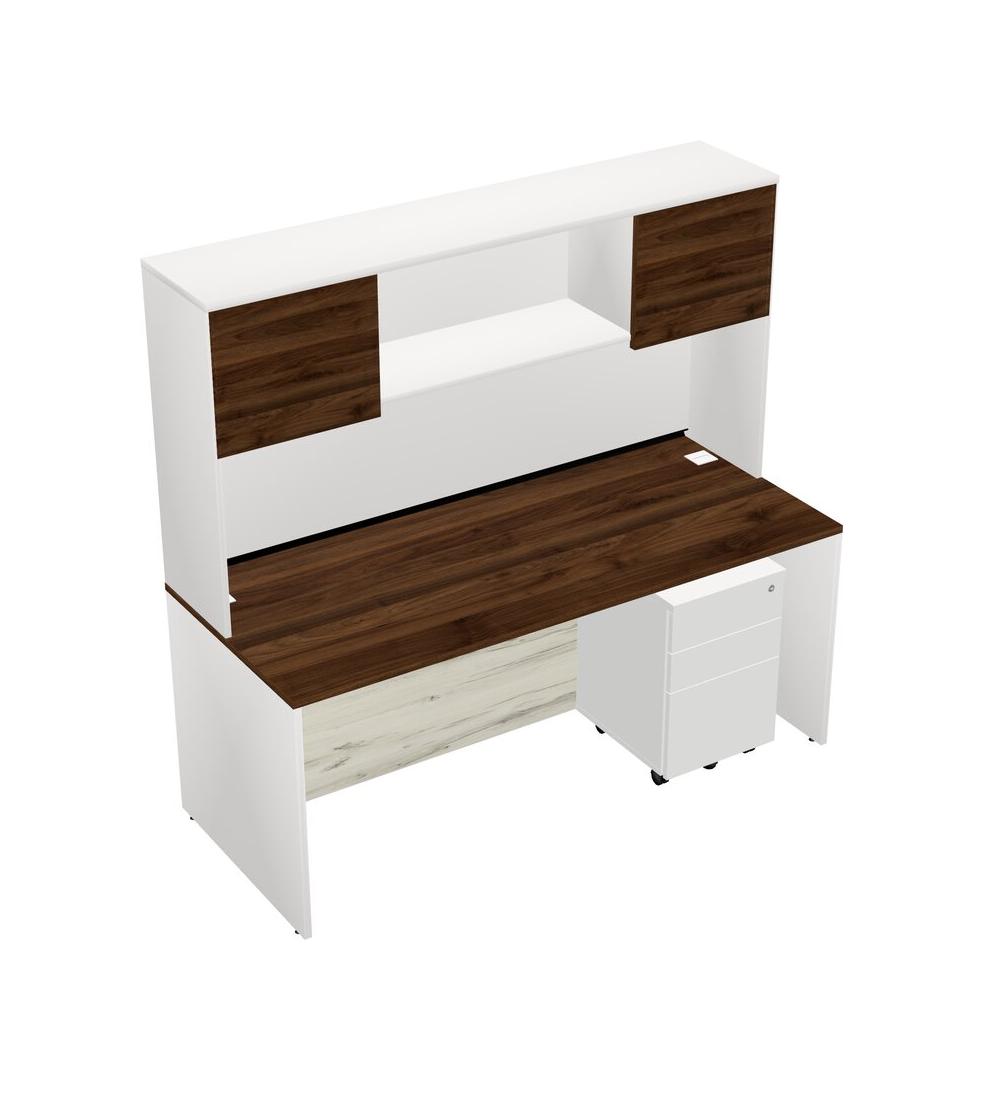 Columbia Walnut Rectangular Office Desk Plus White Wooden Mobile Drawers And White Hutch