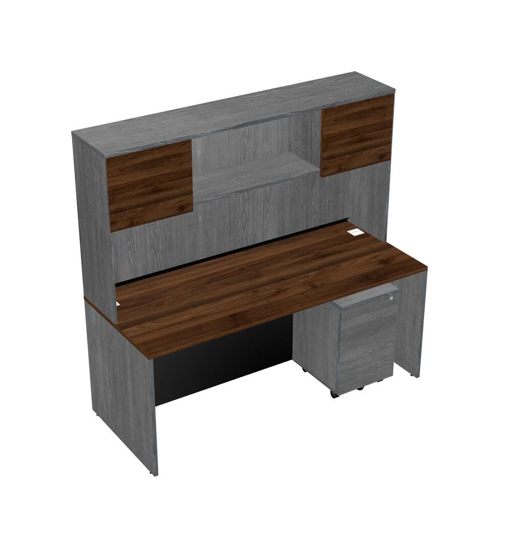 Columbia Walnut Rectangular Office Desk Plus Grey Wooden Mobile Drawers And Grey Hutch