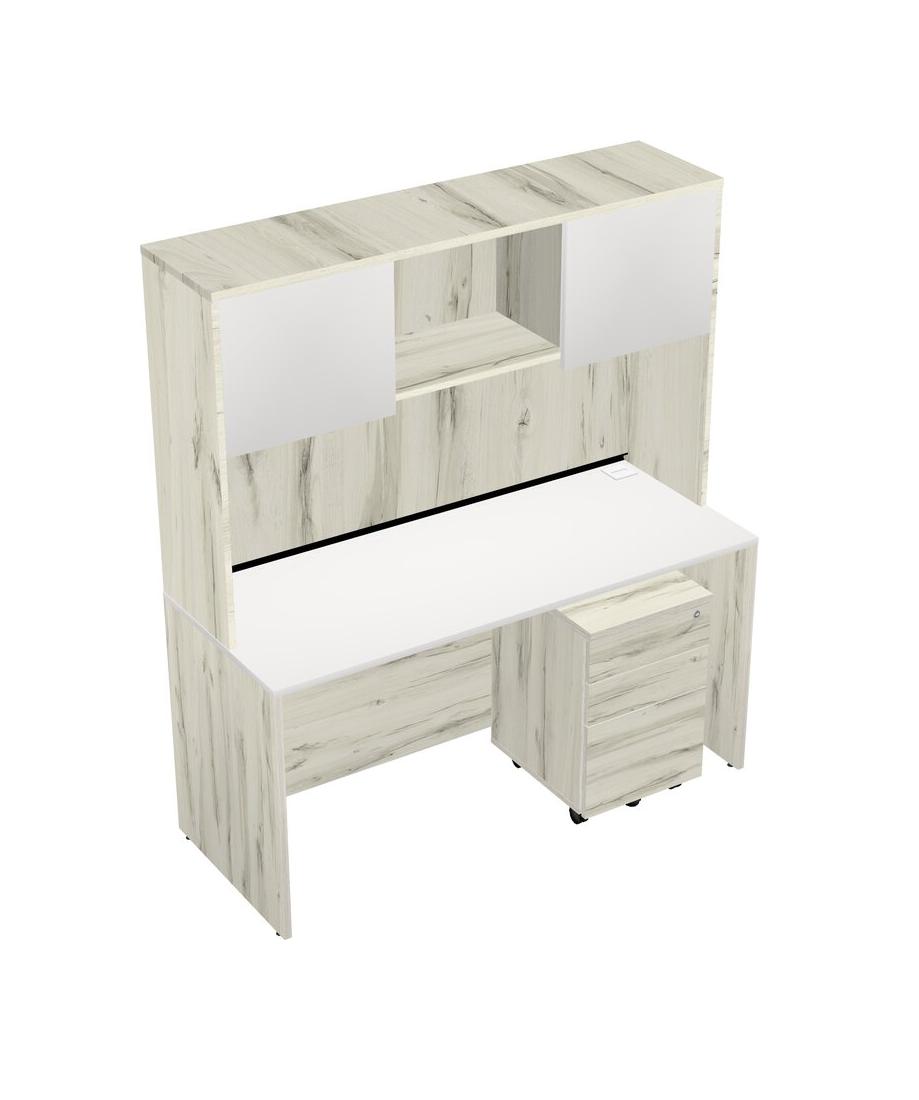 White Rectangular Office Desk Plus Heinne Holz Wooden Mobile Drawers And Heinne Holz Hutch