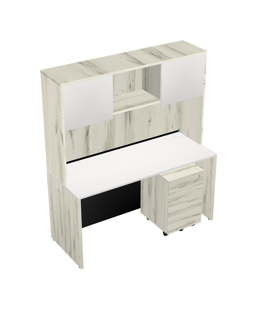 White Rectangular Office Desk Plus Heinne Holz Wooden Mobile Drawers And Heinne Holz Hutch