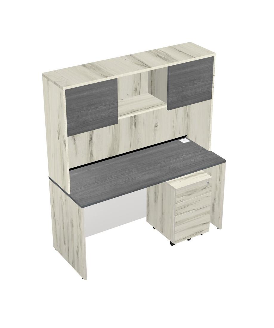 Grey Rectangular Office Desk Plus Heinne Holz Wooden Mobile Drawers And Heinne Holz Hutch