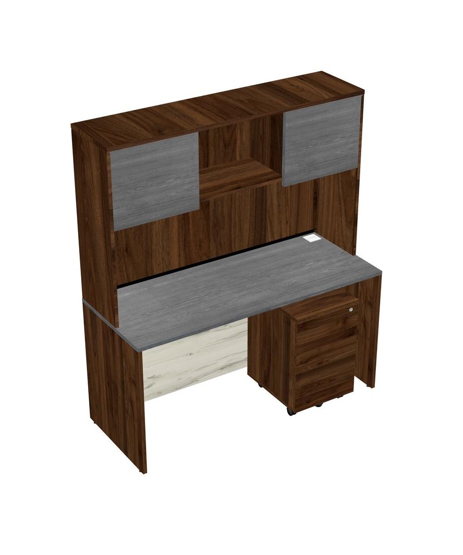Grey Rectangular Office Desk Plus Columbia Walnut Wooden Mobile Drawers And Columbia Walnut Hutch