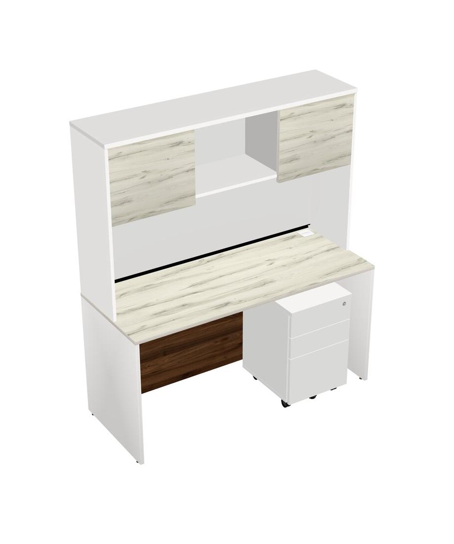 Heinne Holz Rectangular Office Desk Plus White Wooden Mobile Drawers And White Hutch