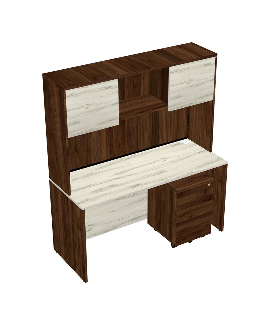 Heinne Holz Rectangular Office Desk Plus Columbia Walnut Wooden Mobile Drawers And Columbia Walnut Hutch