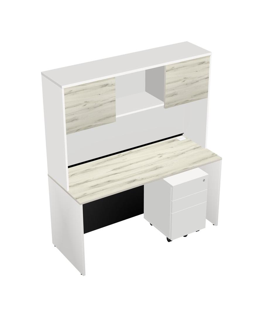 Heinne Holz Rectangular Office Desk Plus White Wooden Mobile Drawers And White Hutch