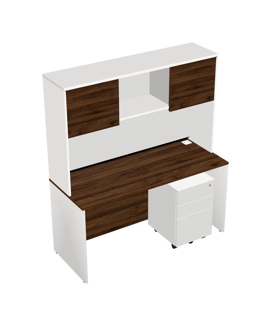 Columbia Walnut Rectangular Office Desk Plus White Wooden Mobile Drawers And White Hutch