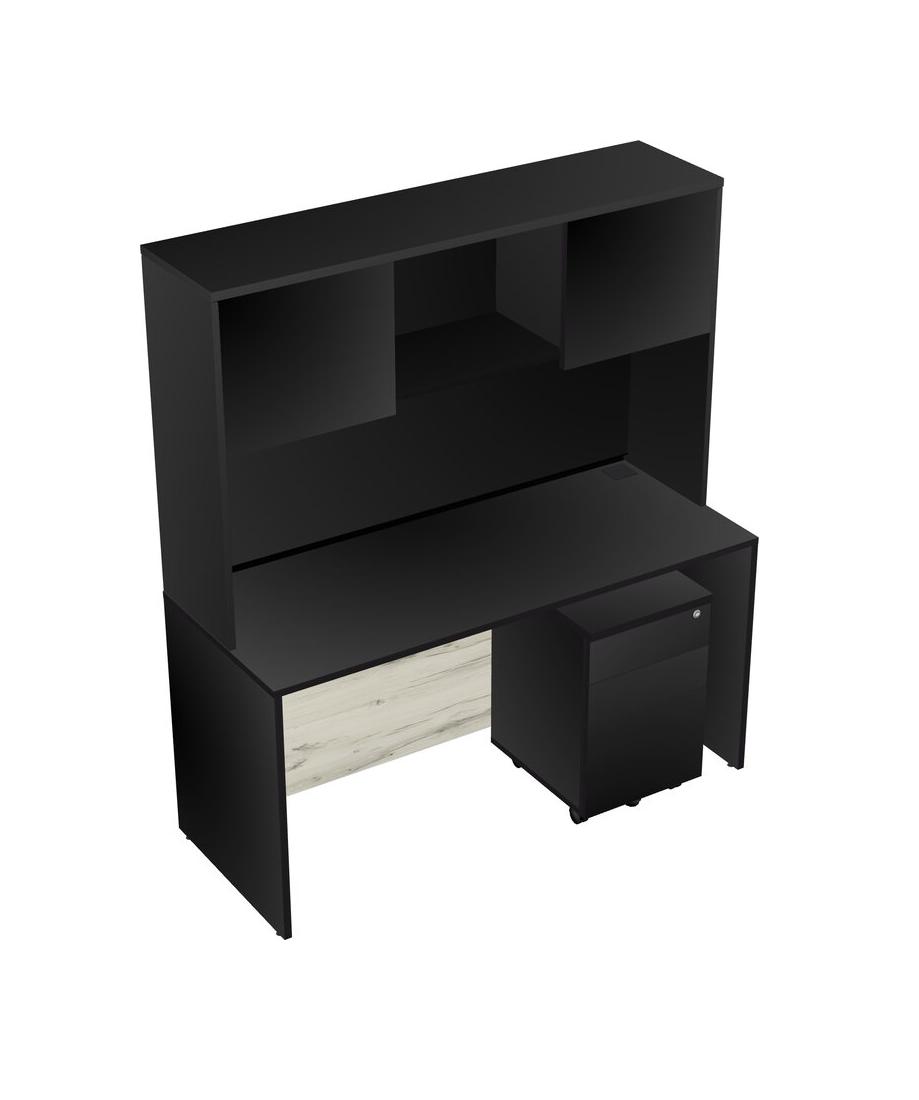 Black Rectangular Office Desk Plus Black Wooden Mobile Drawers And Black Hutch