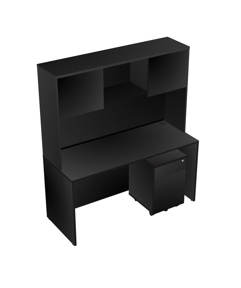 Black Rectangular Office Desk Plus Black Wooden Mobile Drawers And Black Hutch