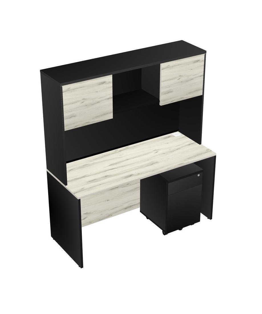 Heinne Holz Rectangular Office Desk Plus Black Wooden Mobile Drawers And Black Hutch