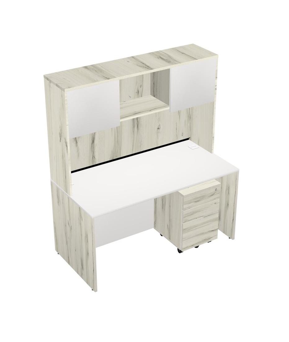 White Rectangular Office Desk Plus Heinne Holz Wooden Mobile Drawers And Heinne Holz Hutch
