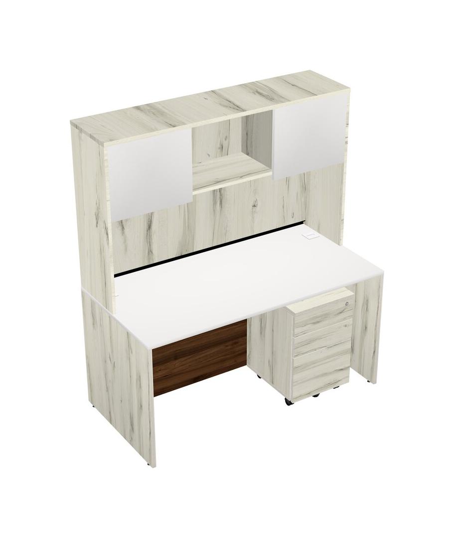 White Rectangular Office Desk Plus Heinne Holz Wooden Mobile Drawers And Heinne Holz Hutch