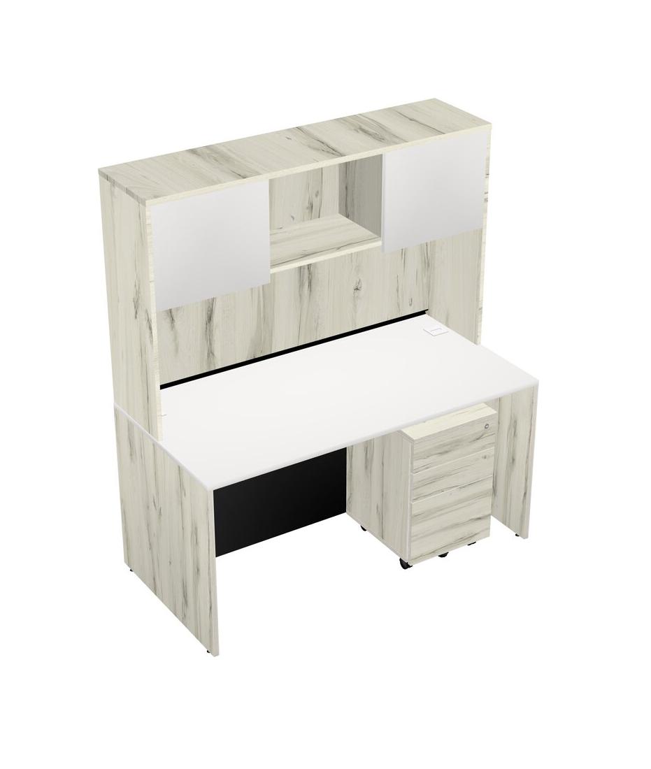 White Rectangular Office Desk Plus Heinne Holz Wooden Mobile Drawers And Heinne Holz Hutch